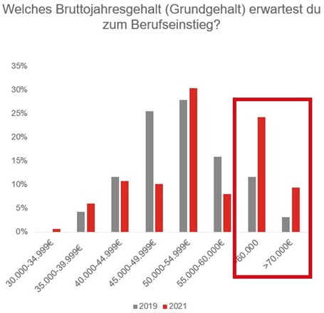 Die Schere zwischen erwarteten und tatsächlich in der Branche üblichen Einstiegsgehältern geht verstärkt auseinander
