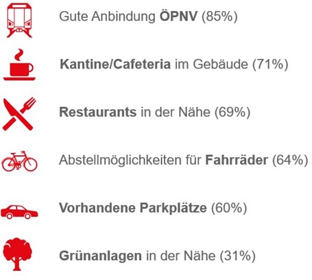 Die Attraktivität des Unternehmensstandorts wird besonders von Erreichbarkeit und Verpflegungsmöglichkeiten beeinflusst