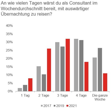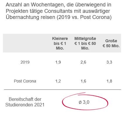 Die Reisebereitschaft der Studierenden liegt über dem prognostizierten Reiseaufwand von Beratungsunternehmen