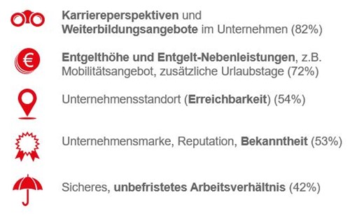 Karriereperspektiven und Weiterbildungsangebote sind die wichtigsten Entscheidungskriterien bei der Arbeitgeberwahl